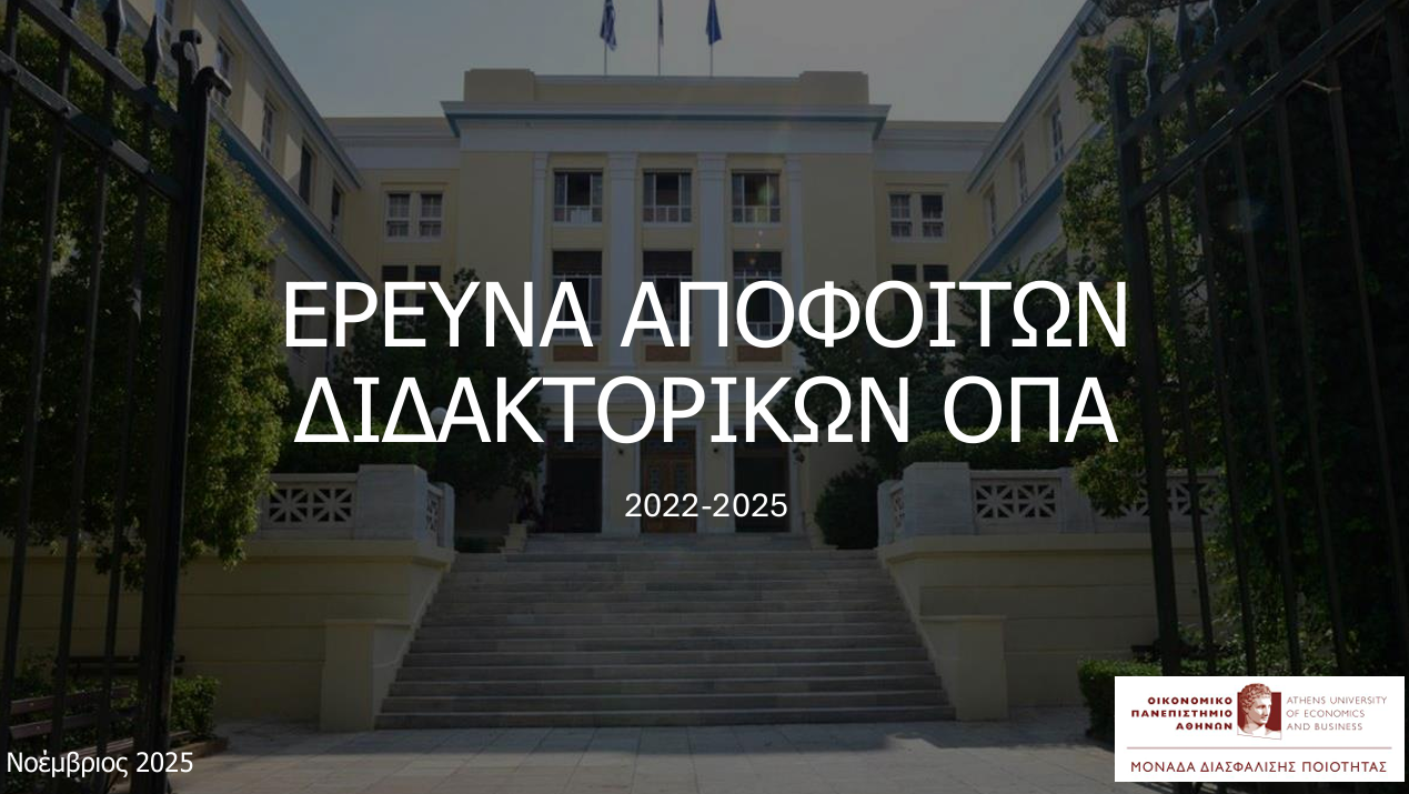Η έκθεση της Έρευνας Αποφοίτων Διδακτορικών Σπουδών(2022-2025) είναι διαθέσιμη εδώ: