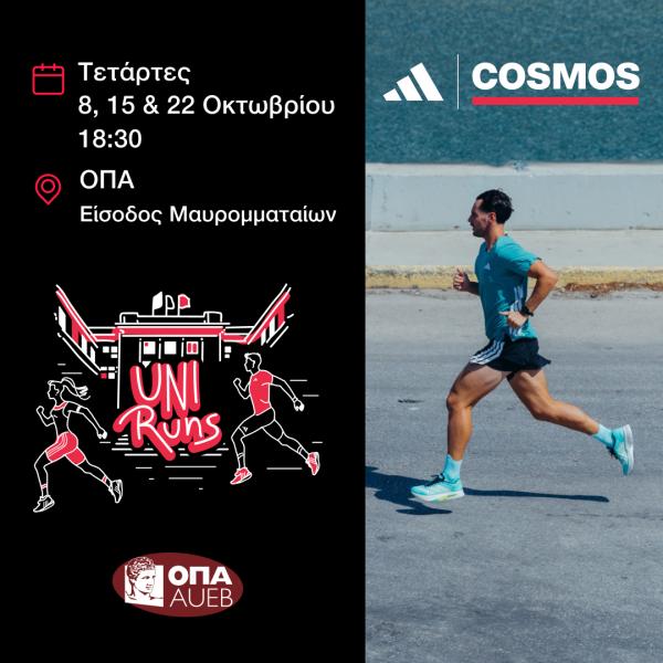 Ετοιμάσου για 3 μοναδικά Uni Runs σε συνεργασία με τα Cosmos Sport και την adidas!