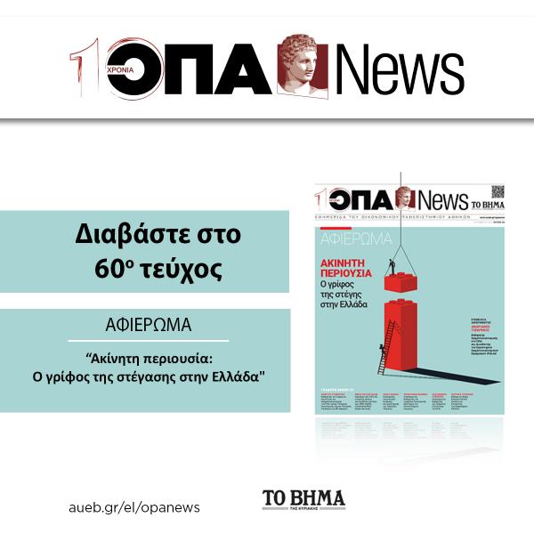 H ΟΠΑ News κυκλοφορεί την Κυριακή 21 Δεκεμβρίου με το ΒΗΜΑ ΤΗΣ ΚΥΡΙΑΚΗΣ, με ειδικό αφιέρωμα: "Ακίνητη περιουσία: Ο γρίφος της στέγασης στην Ελλάδα"