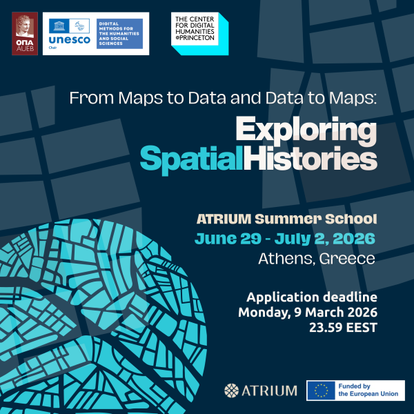 The ATRIUM Summer School, From Maps to Data and Data to Maps: Exploring Spatial Histories, invites applications from scholars and professionals interested in digital humanities methods for mapping and spatial visualization. Taking place in Athens, Greece, from June 29 to July 2, 2026, the program offers an intensive introduction to spatial data, cartography, and collaborative digital scholarship.