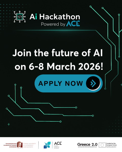 Το ACE ανακοινώνει την έναρξη του AI Hackathon Greece 2026, της κορυφαίας διοργάνωσης τεχνητής νοημοσύνης στη χώρα, η οποία επιστρέφει για τρίτη συνεχόμενη χρονιά μετά από δύο εντυπωσιακά επιτυχημένους κύκλους που ξεπέρασαν κάθε προσδοκία συμμετοχής και καινοτομίας.