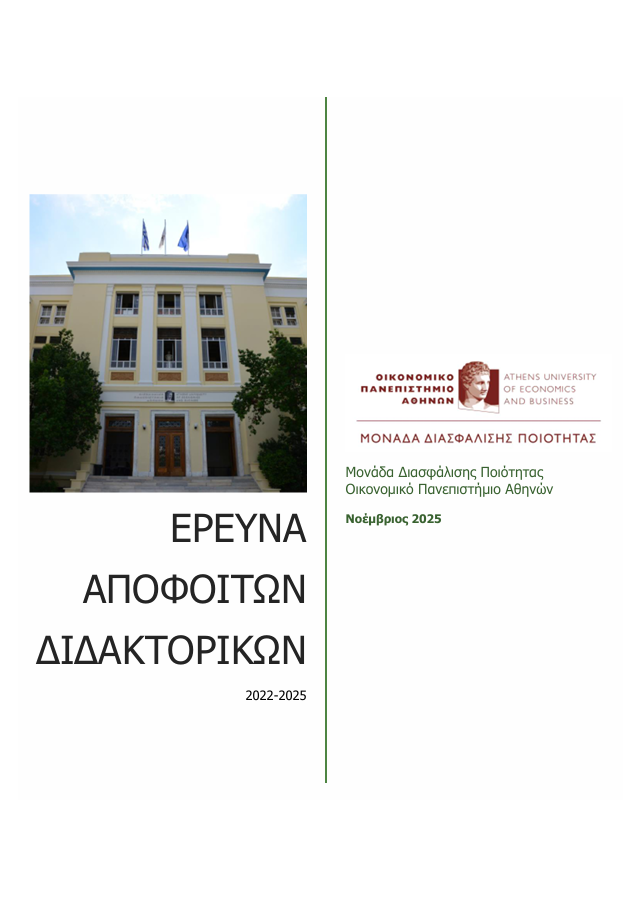 Η έκθεση της Έρευνας Αποφοίτων Διδακτορικών Σπουδών(2022-2025) είναι διαθέσιμη εδώ: