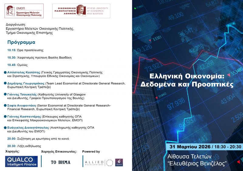 Ελληνική Οικονομία: Δεδομένα και Προοπτικές, 31 Μαρτίου 2026, 18:30-20:30