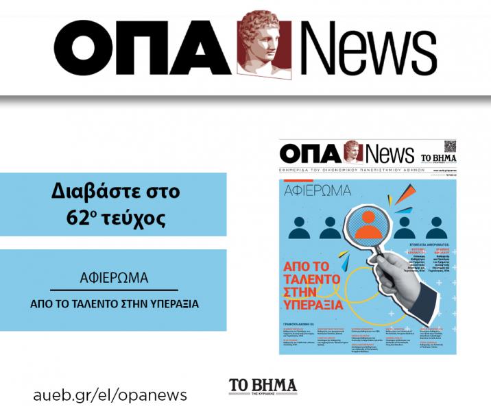 H ΟΠΑ News κυκλοφορεί την Κυριακή 26 Απριλίου με το ΒΗΜΑ ΤΗΣ ΚΥΡΙΑΚΗΣ, με ειδικό αφιέρωμα: "Από το ταλέντο στην υπεραξία".