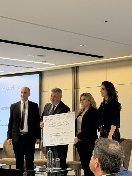 Το Research Award της Ελληνικής Ένωσης Χρηματοοικονομικών Αναλυτών CFA αποσκοπεί στην αναγνώριση και επιβράβευση της εξαιρετικής επιστημονικής και εμπειρικής έρευνας στους τομείς των επενδύσεων, της χρηματοοικονομικής, των οικονομικών, της διοίκησης επιχειρήσεων και της λογιστικής. Η αξιολόγηση των ερευνητικών άρθρων πραγματοποιήθηκε ανώνυμα από τετραμελή επιτροπή, αποτελούμενη από μέλη με αποδεδειγμένη και μακροχρόνια εμπειρία στον τομέα της επιστημονικής έρευνας.