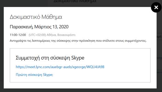 Προγραμματισμός Διάλεξης με την υπηρεσία Skype Meetings