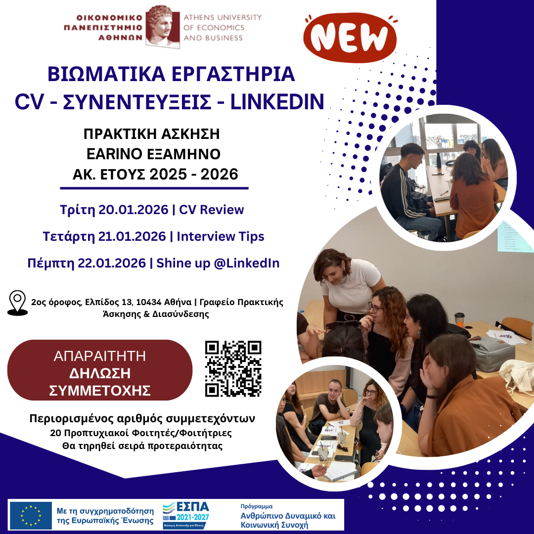 CV Review - Interview Tips - LinkedIn Workshops | Πρακτική Άσκηση Εαρινό Εξάμηνο Ακ. Έτους 2025 - 2026