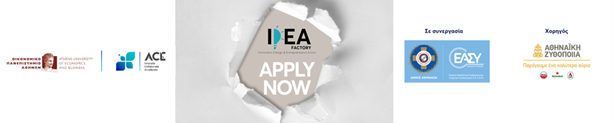 Το IDEA FACTORY είναι ένα δια-πανεπιστημιακό πρόγραμμα ανάπτυξης επιχειρηματικών ιδεών που συνδυάζει γνώσεις, δεξιότητες καινοτομίας και συνεργασία μεταξύ φοιτητών και ερευνητών από διαφορετικά πεδία. Συντονίζεται από τη Μονάδα Μεταφοράς Τεχνολογίας και Καινοτομίας – ACE του Οικονομικού Πανεπιστημίου Αθηνών, σε συνεργασία με τον Αναπτυξιακό Οργανισμό «ΕΑΣΥ Α.Ε. ΑΟΤΑ» του Δήμου Αθηναίων και με χορηγό την Αθηναϊκή Ζυθοποιία.