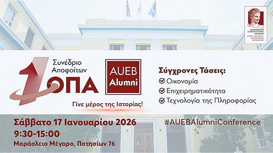 Η συμμετοχή είναι δωρεάν, με απαραίτητη εγγραφή. Περισσότερες πληροφορίες και πρόγραμμα συνεδρίου: https://alumni.aueb.gr/el/aueb-alumniconference-2026