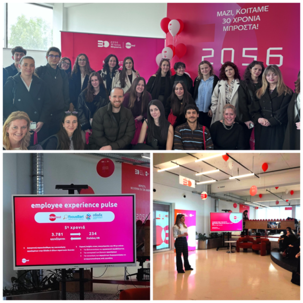 Θερμές ευχαριστίες στην κυρία Στέλλα Βουλγαράκη, CPO, και τα στελέχη της Διεύθυνσης HR, κκ Γιώργο Λουκα, Human Resources Director, Ειρήνη Φωτοπούλου, Talent Acquisition Team Lead, Κωνσταντίνα Ψαλιδα, Total Rewards and People Ops Human Resources Specialist, Χριστίνα Ασημακοπούλου, Junior Learning & Development Specialist, Θέμη Αθανασίου, HR Specailist, Αρετή Λύκου, HR Business Partner και Αρετή Μπούτσικου, Junior Talent Acquisition Specialist, για την εξαιρετική διοργάνωση, τις παρουσιάσεις, την ενημέρωση αναφορικά με την HR κουλτούρα της εταιρείας και τη διάδραση!